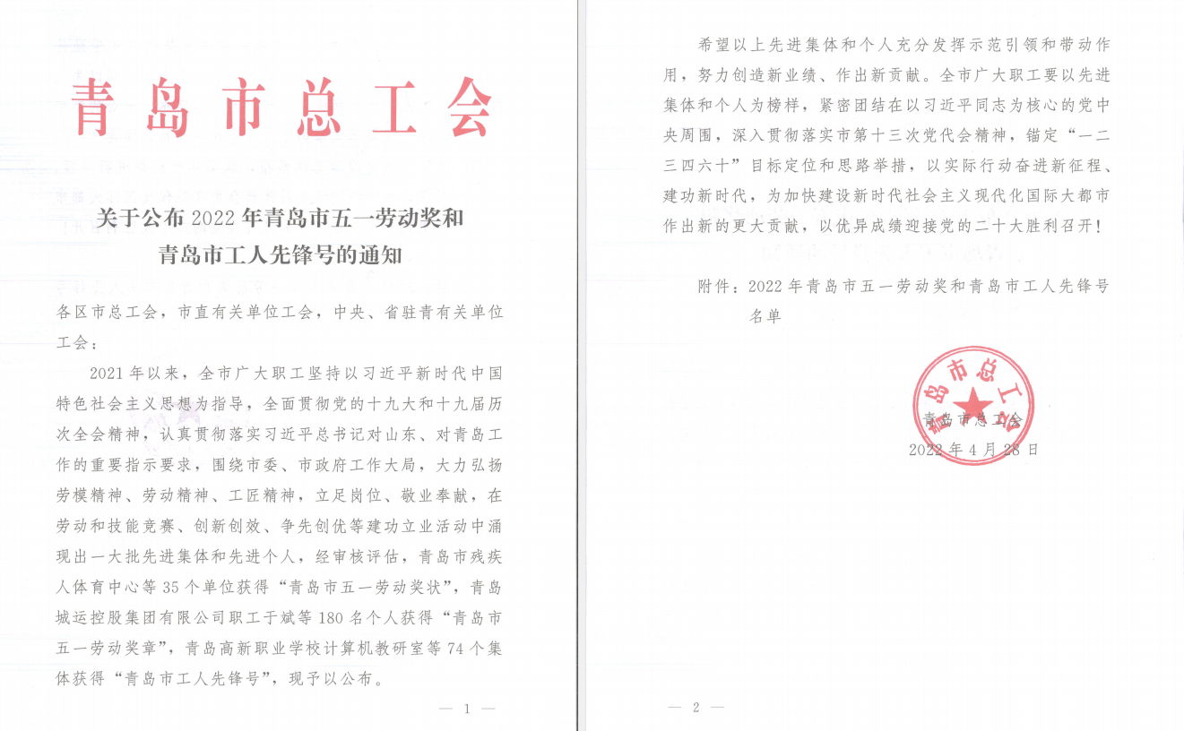 建功立業(yè) 奮勇爭(zhēng)先|興華集團(tuán)榮獲“青島市五一勞動(dòng)獎(jiǎng)狀”