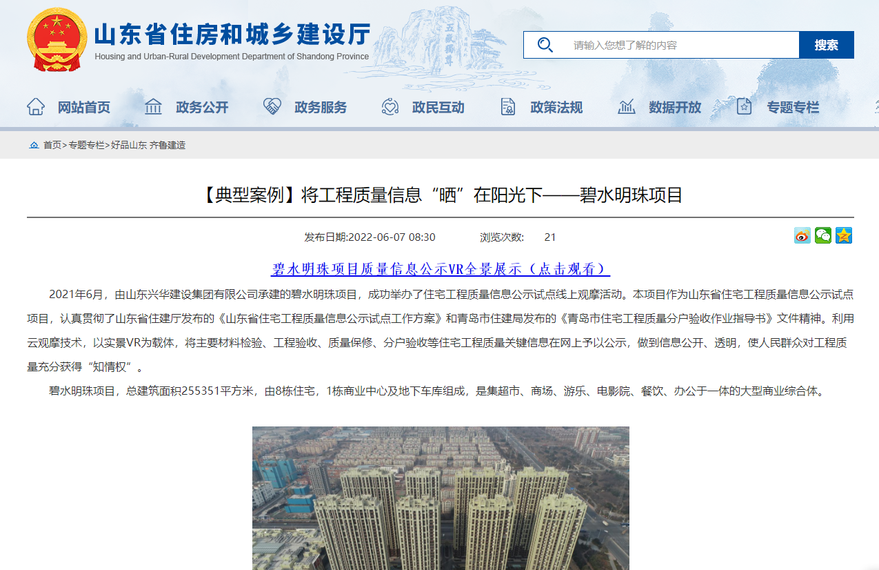 碧水明珠項(xiàng)目被省住建廳官方網(wǎng)站宣傳報(bào)道